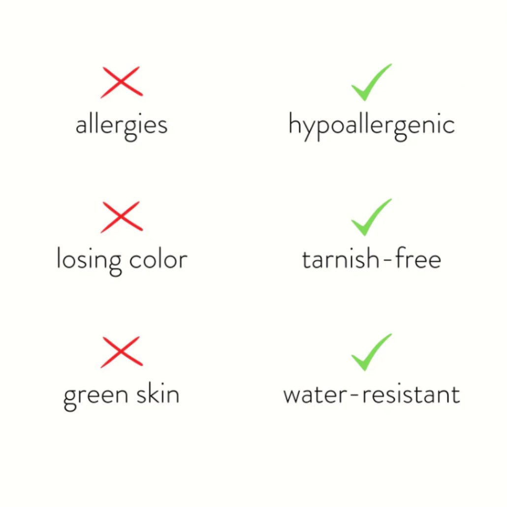 Made from waterproof stainless steel, you'll never have to worry about fading or tarnishing jewelry again.