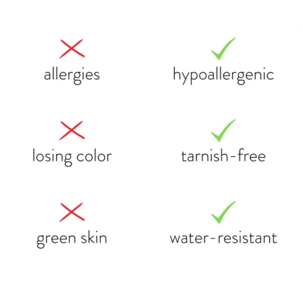 Made from waterproof stainless steel, you will never have to worry about your jewelry fading or oxidizing again.