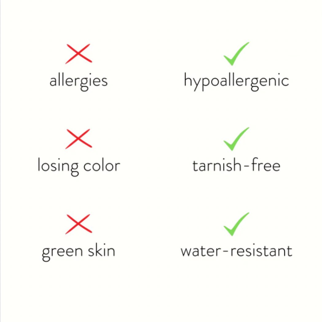 Made from waterproof stainless steel, you will never have to worry about fading or discolored jewelry again!