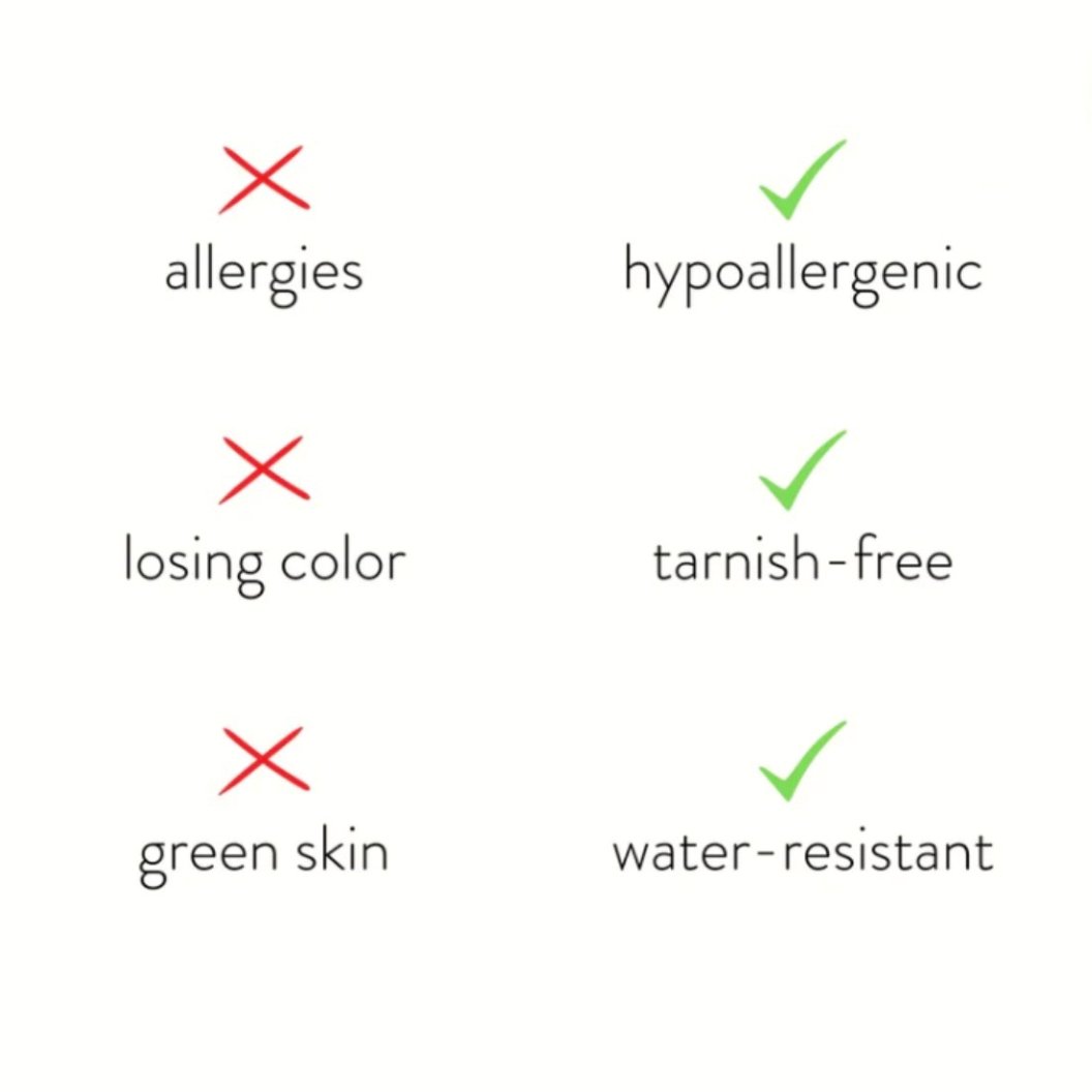 Made from waterproof stainless steel, you will never have to worry about fading or oxidizing jewelry again.