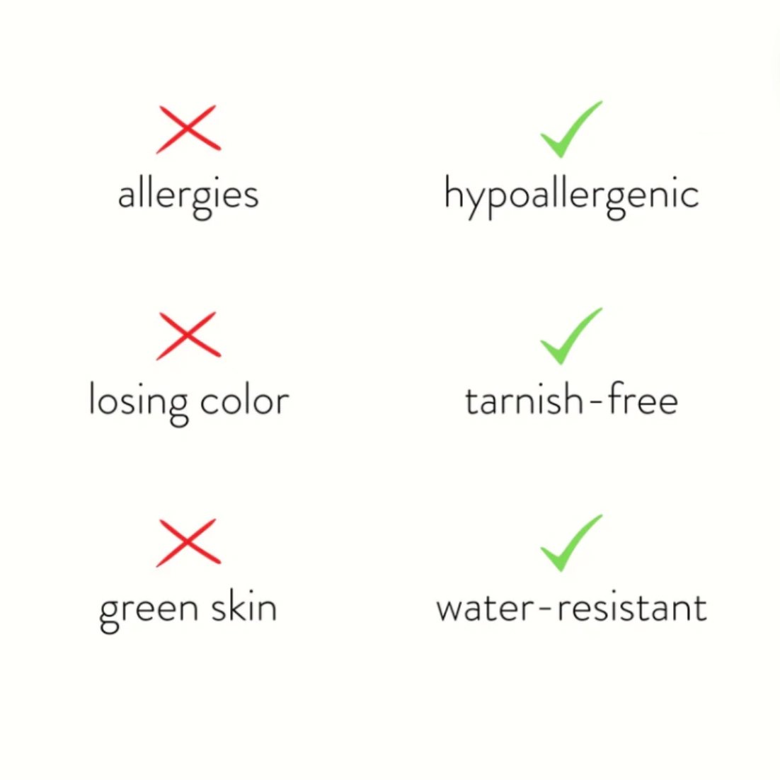 Made from waterproof stainless steel, you will never have to worry about fading or tarnishing jewelry again.
