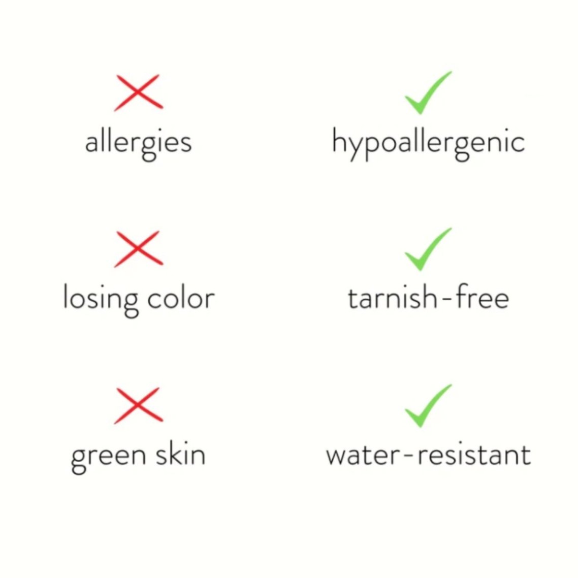 Made from waterproof stainless steel, you’ll never have to worry about your jewelry fading or tarnishing again!